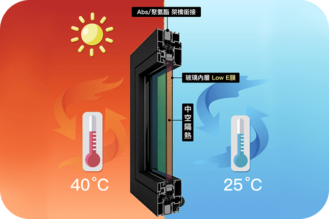 窗戶皆為斷熱橋鋁+中空覆層low-e玻璃,房屋外殼就已有良好斷熱效果。